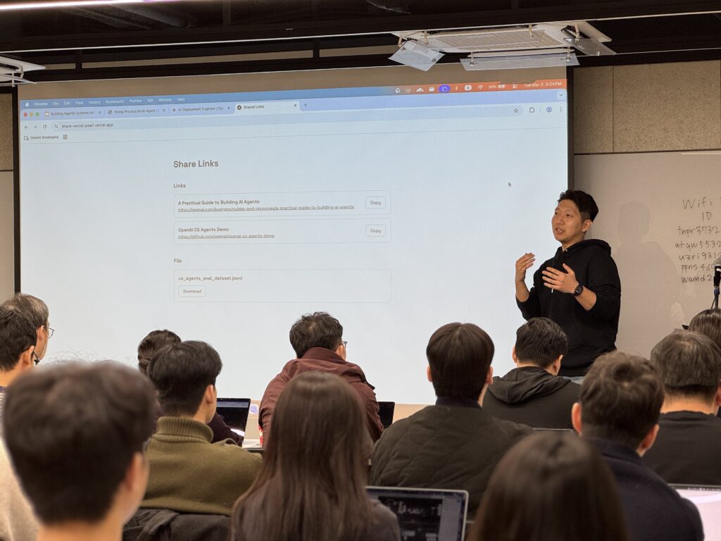 このイベントには、ZVCが韓国で出資するスタートアップから40名以上の起業家やテクニカルリーダーが参加しました。ワークショップでは、OpenAIの技術を活用したAIプロダクトやエージェント型システムの構築について、実践的なアプローチをテーマにセッションを行いました。