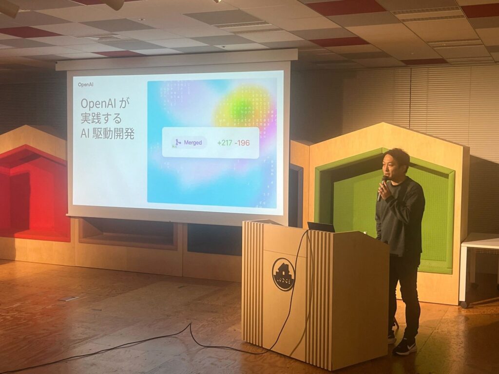 最初のセッションでは、OpenAI Japanで、DevEx Engineerを務める瀬良 和弘(せら・かずひろ)さんが登壇しました。この中で、OpenAIが実際のプロダクト開発の現場でどのようにAIを活用しているのか、その考え方と実践を共有しました。